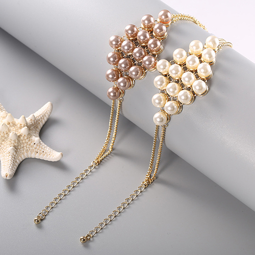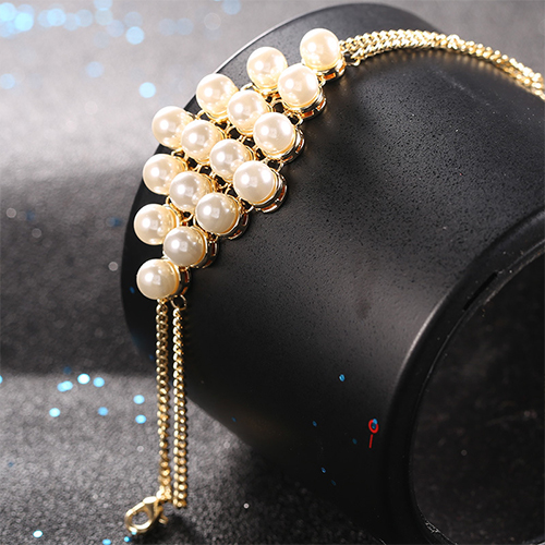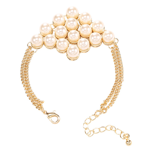 mythical charm with this bracelet. This alloy bracelet is inlaid with pearls,elegant and chic. A perfect Valentine's Day present for your girlfriend.