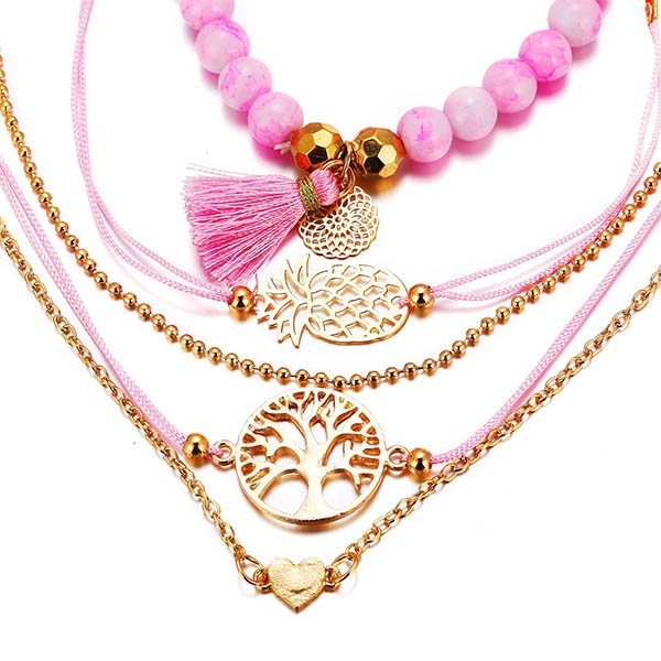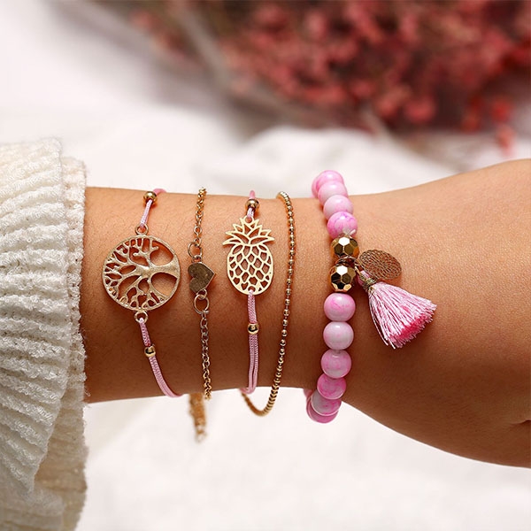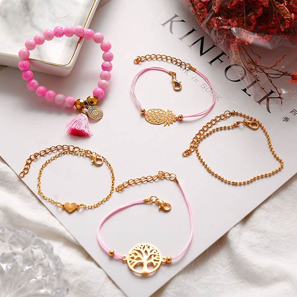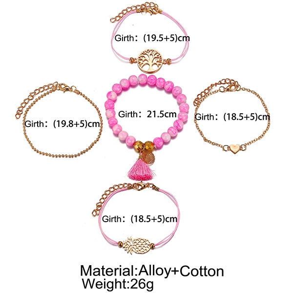 Fashion Pineapple Heart Pendant Bracelet Set 5 pcs/Set