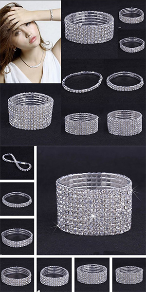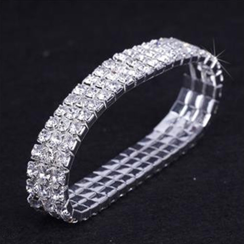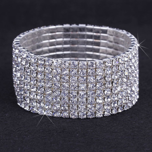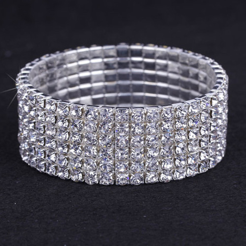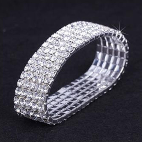 Fashion Rhinestone-Encrusted Silver Stretch Bracelet