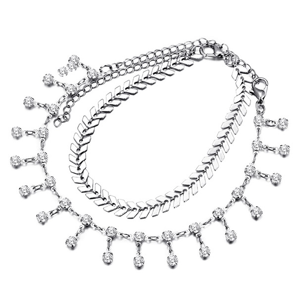 Fashion Rhinestone Inlaid Alloy Anklet Set 2 pcs/Set