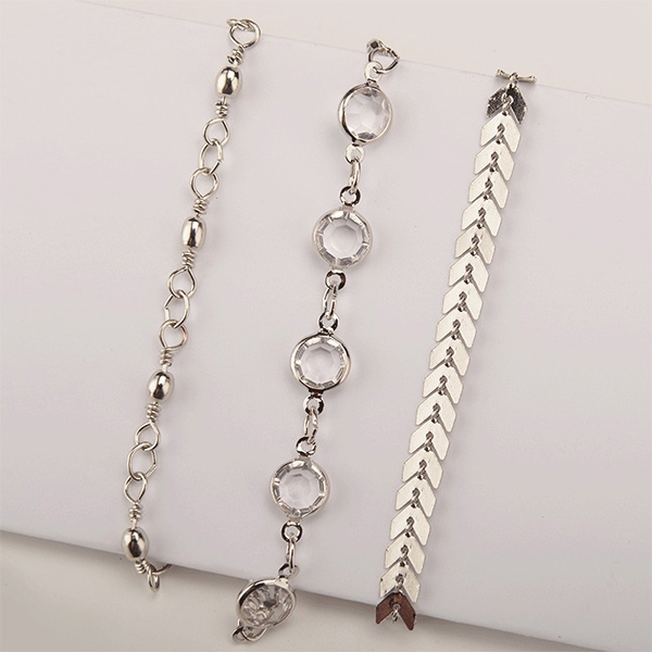 This anklet set consists of 3 pieces different anklets,inlaid with rhinestone details,sparkle and