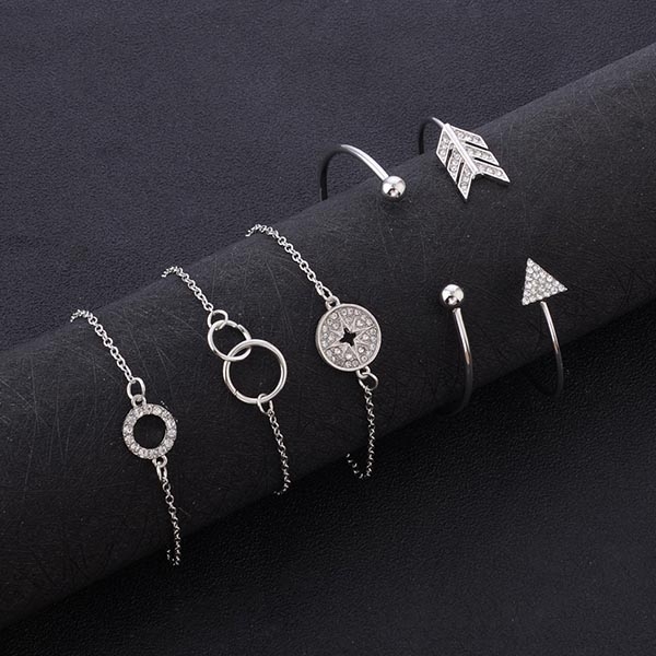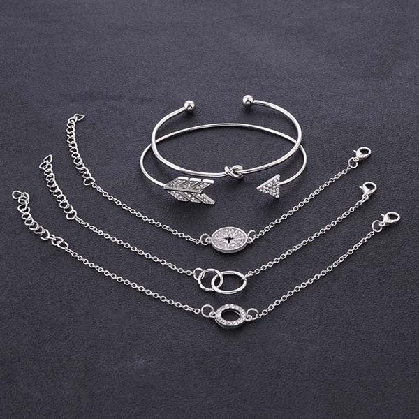 Fashion Rhinestone Inlaid Arrow Knotted Bracelet Set 5 pcs/Set