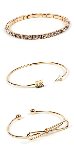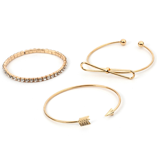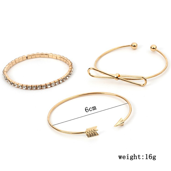 Fashion Rhinestone Inlaid Bowknot Arrow Bracelet Set 3 pcs/Set