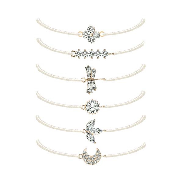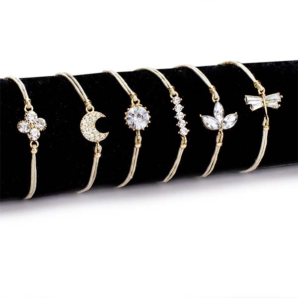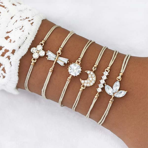 This bracelet set consists of 6 pieces different bracelets,decorated with rhinestone crescent,