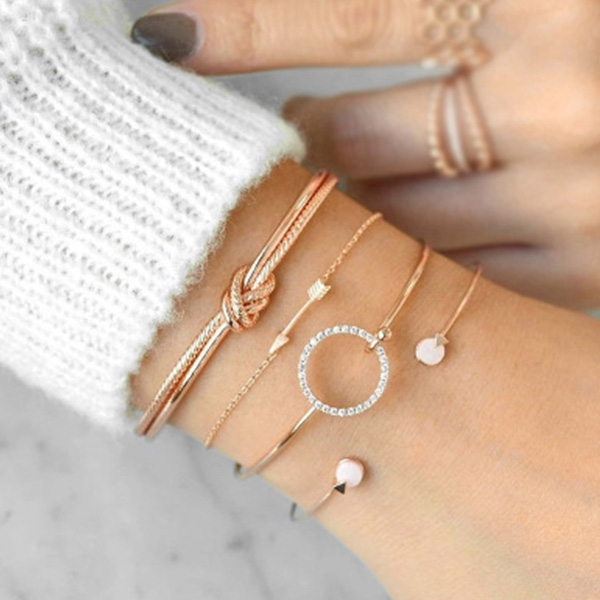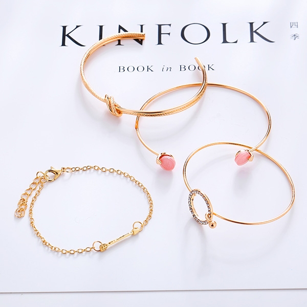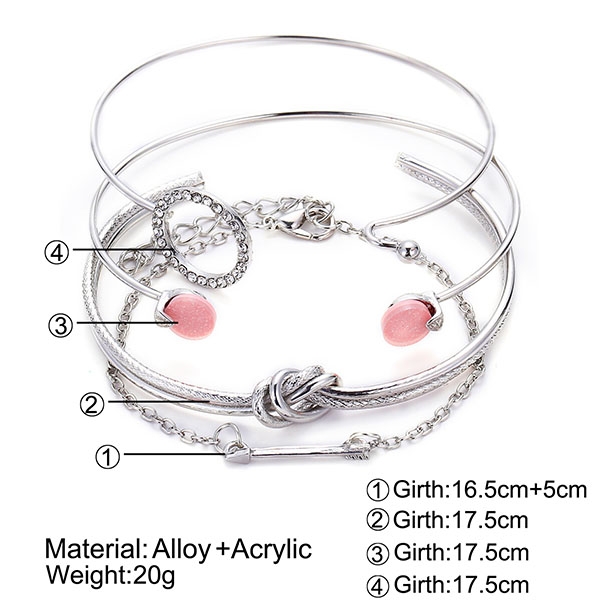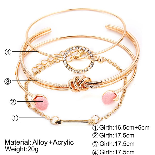 Fashion Rhinestone Inlaid Knotted Bracelet Set 4 pcs/Set
