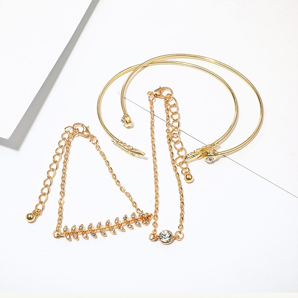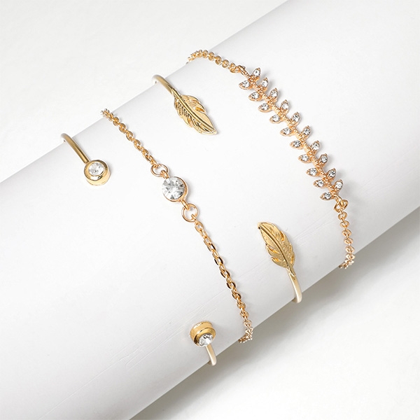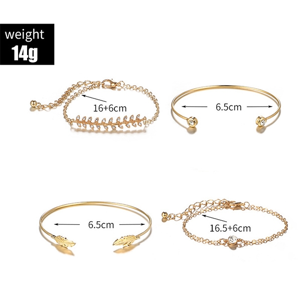 Fashion Rhinestone Inlaid Leaf Shaped Bracelet Set 4 pcs/Set