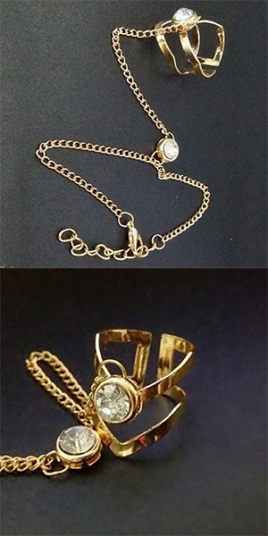 Features ring and bracelet all in one,chic and stylish. And its rhinestone design makes it