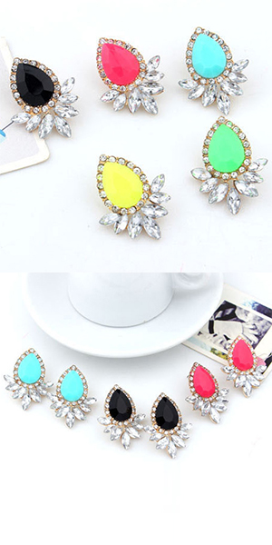 Water drop stud earring,decorated with rhinestone,dazzling and charming. A perfect additions for a glamorous look!