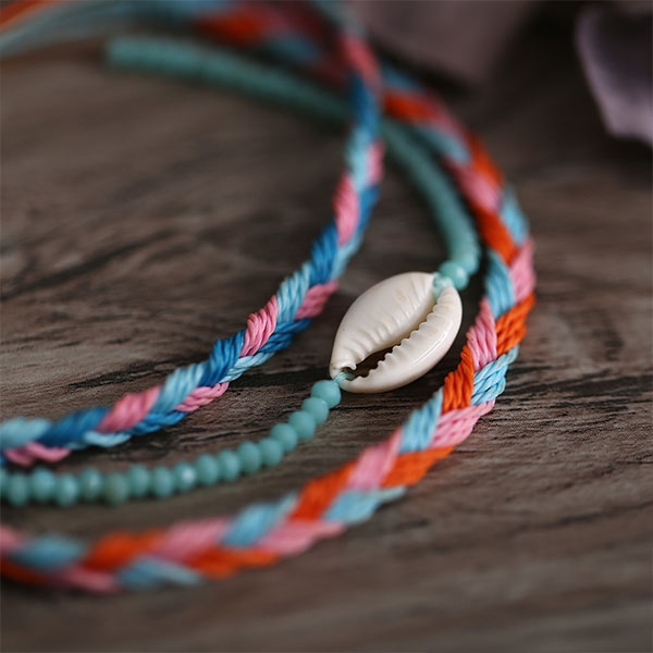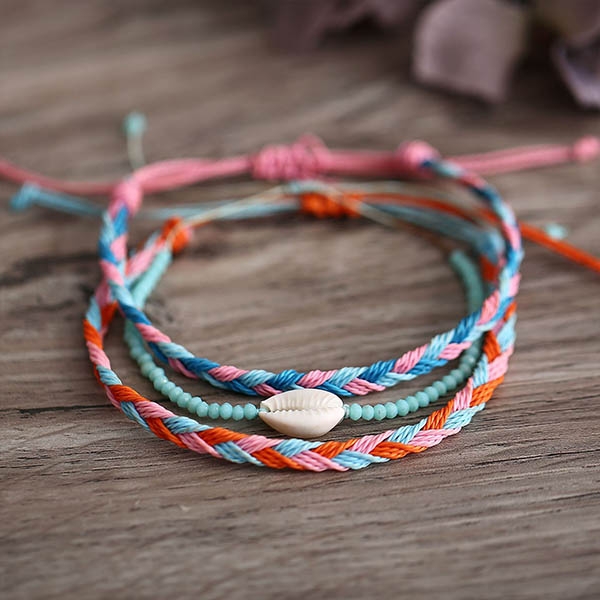 Fashion Shell Pendant Colorful Braided Bracelet
