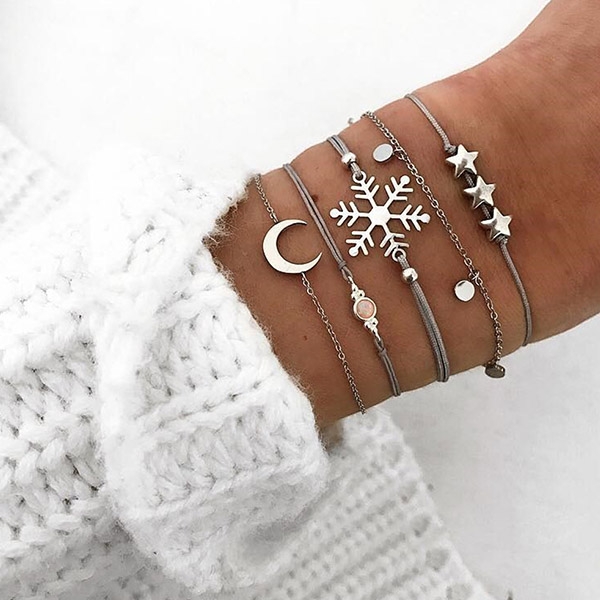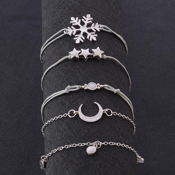 Fashion Snowflake Star Crescent Pendant Bracelet Set 5 pcs/Set