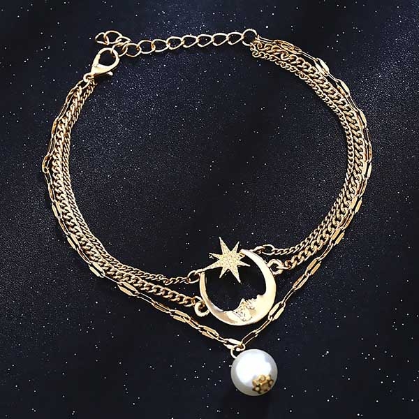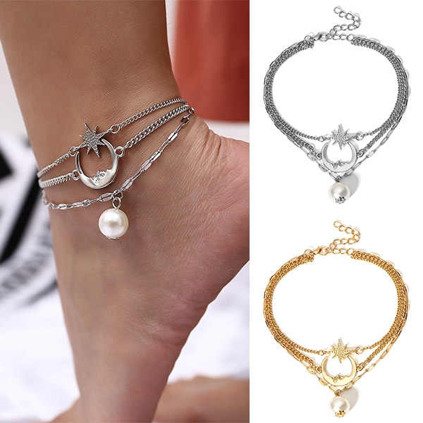 This elastic ankle chain is decorated with moon,star and bead pendant ,chic and stylish.When walking on