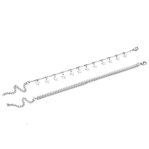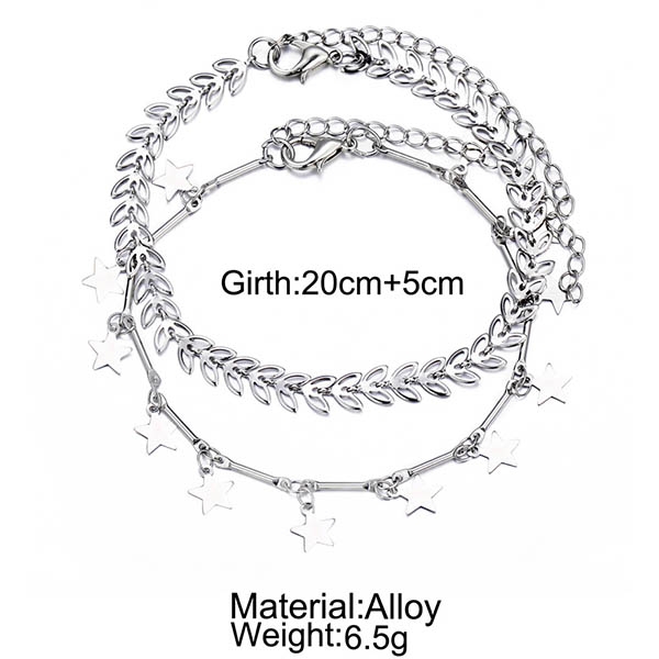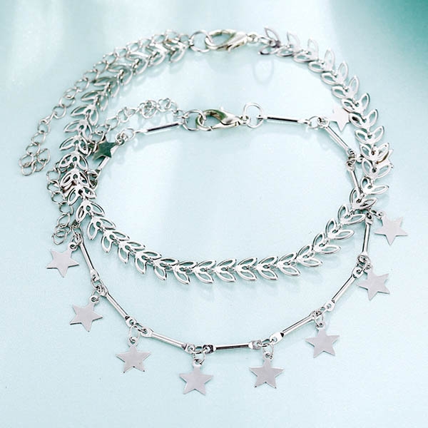 Fashion Star Pendant Leaf Shaped Anklet Set 2 pc/Set