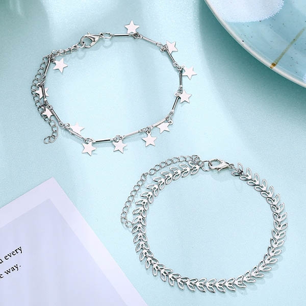 This anklet set comes with a classic yet stylish silver tone,including 2 pieces different anklest,