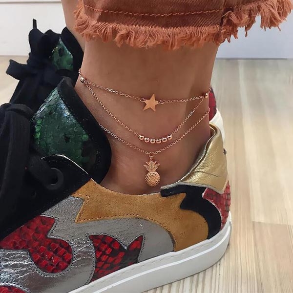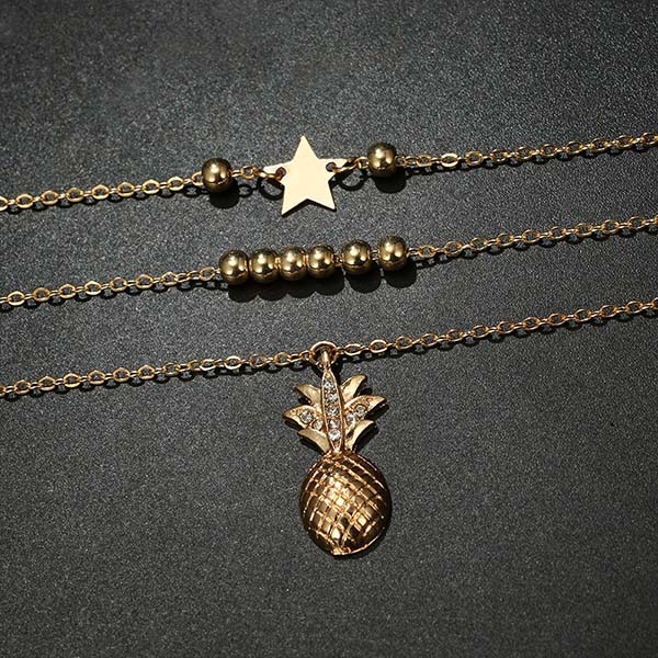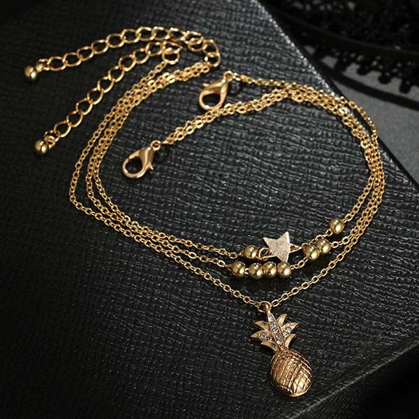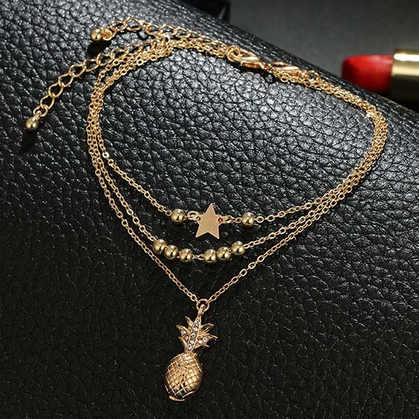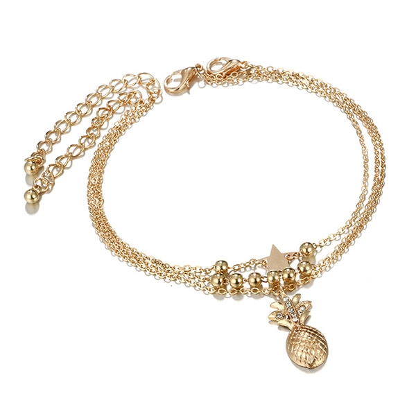 This anklet is designed with three-layer style,decorated with star and pineapple pendant,