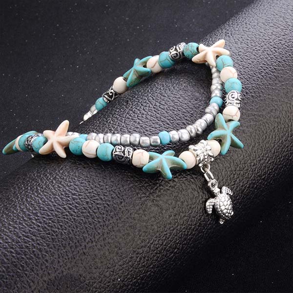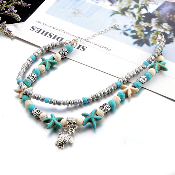 Dual-layer style,decorated with turtle and starfish pendant,chic and stylish. It is also a cool way to