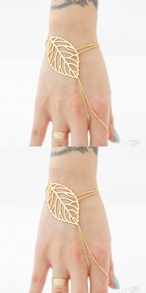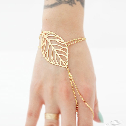 Fashion Style Hollow Out Leaf Finger Harness Bracelet