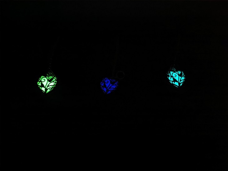 pendant can be luminous at night. What's more, there is decorative pattern on the heart-shaped
