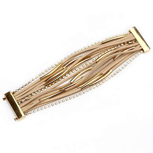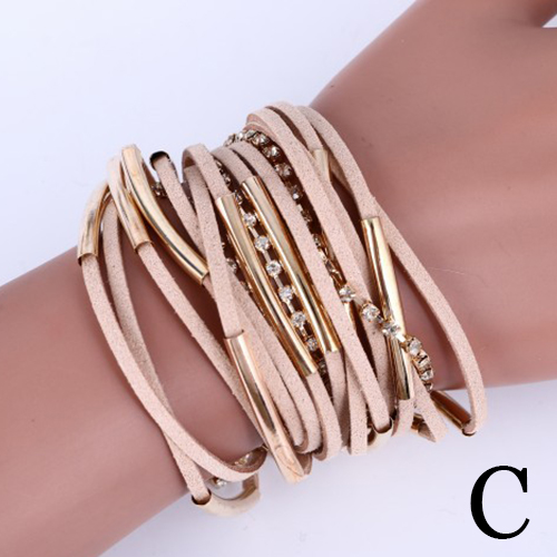 What's more, decorated with inlaid rhinestone makes this hand woven bracelet sparkle and fashionable.