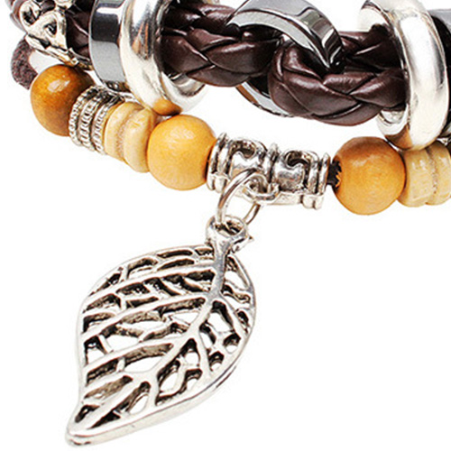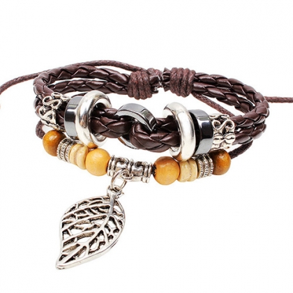 Punk Style Leaf Pendant Hand-braided Bracelet