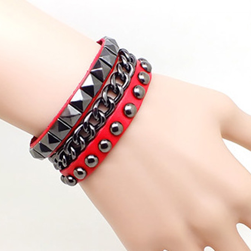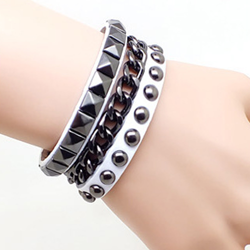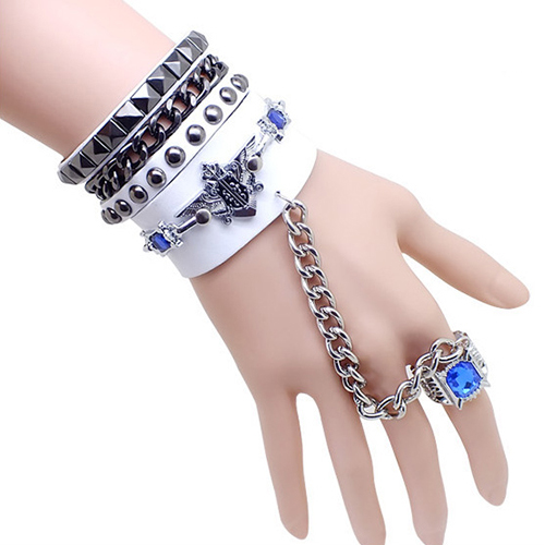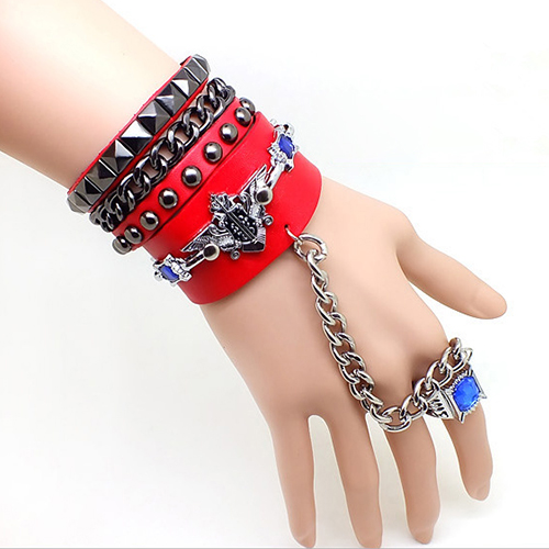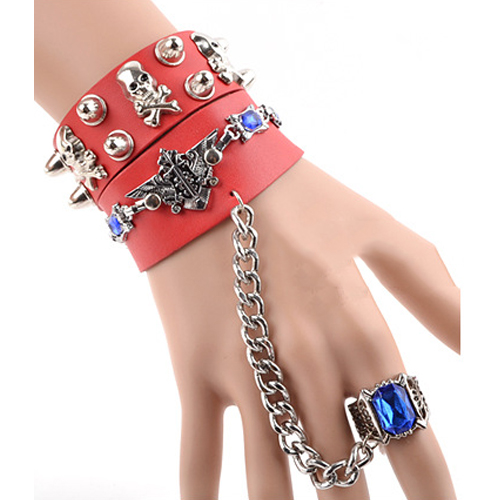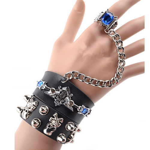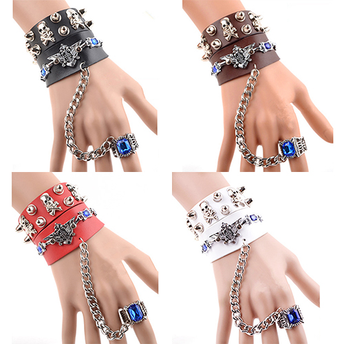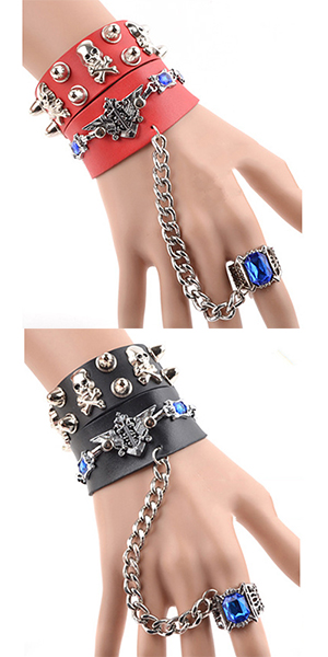 This bracelet is unique and stylish! Including a skull head bracelet or a rivets bracelet and a ring bracelet,