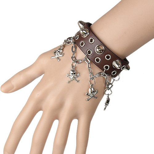Punk Style Skull Heads Pendant Bracelet