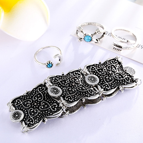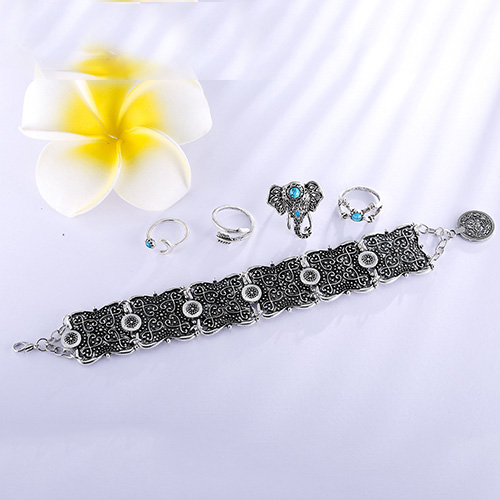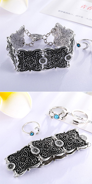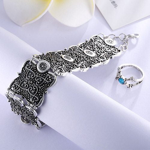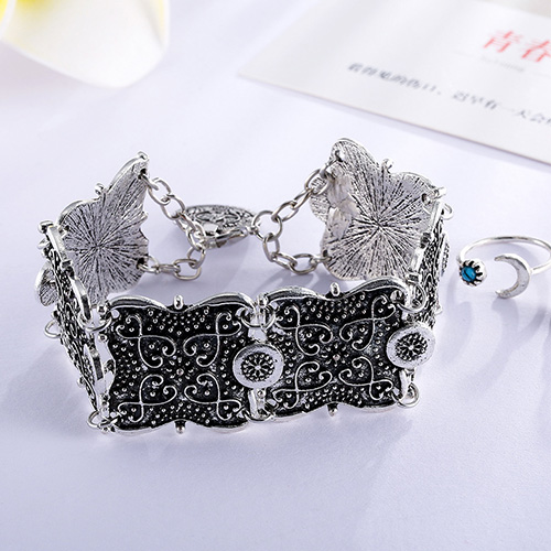 Retro Etched-Paneled Tribal-Inspired Chain Bracelet