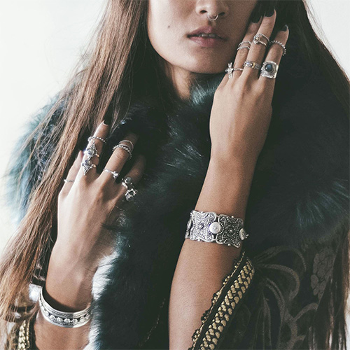 A midweight bracelet featuring tribal-inspired design, etched-pattern