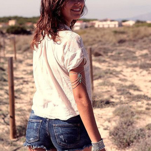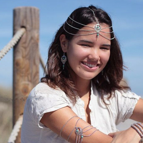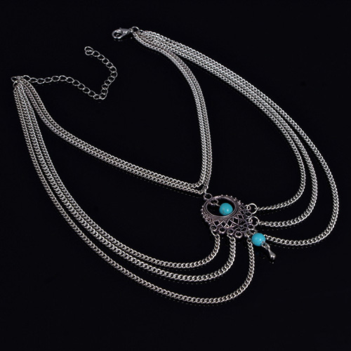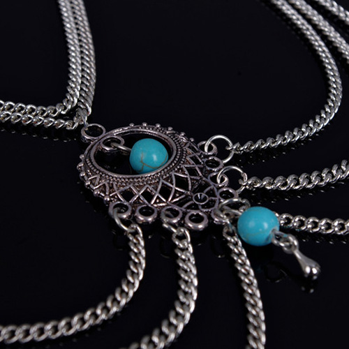 Retro Ethnic Style Hollow Out Turquoise Pendant Arm Chain Bracelet