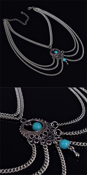 with turquoise for decoration. Multi-layer tassels design makes it more charming.