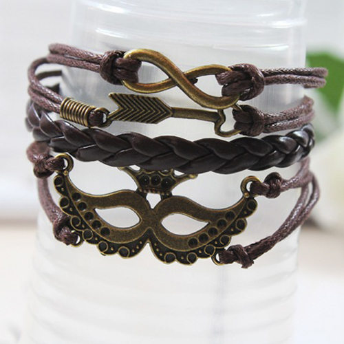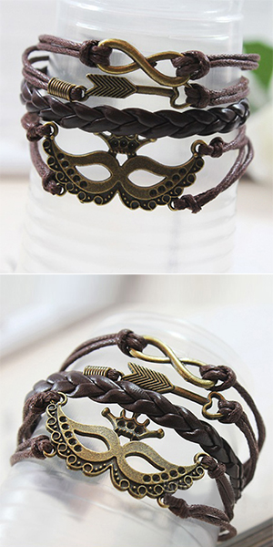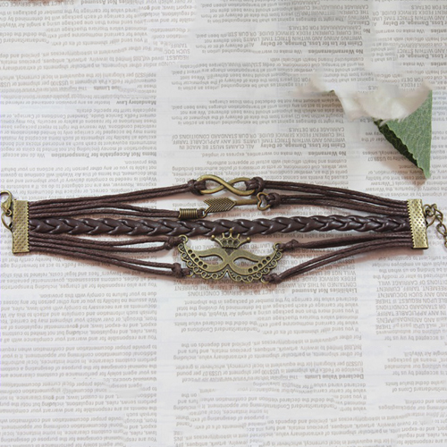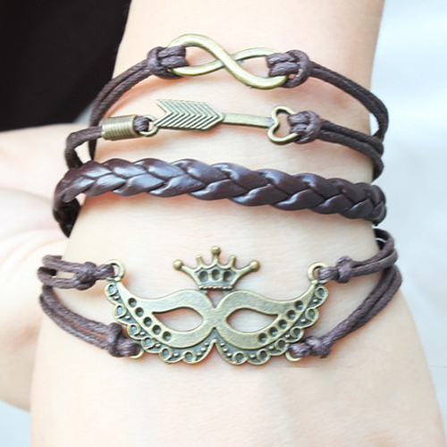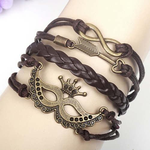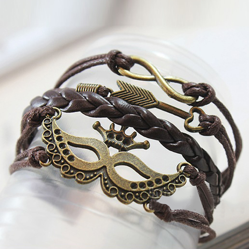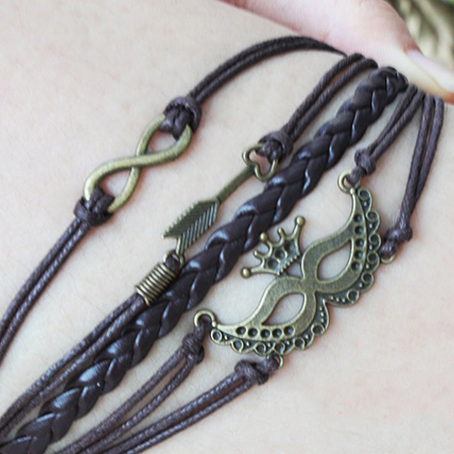 Retro Style Arrow Crown Infinity Woven PU Leather Bracelet