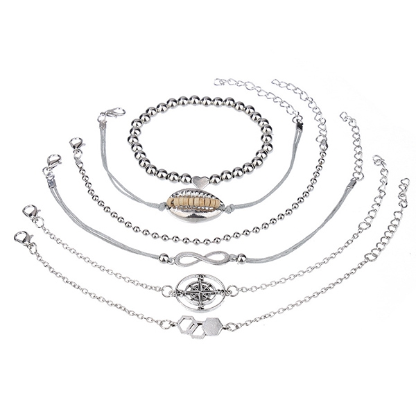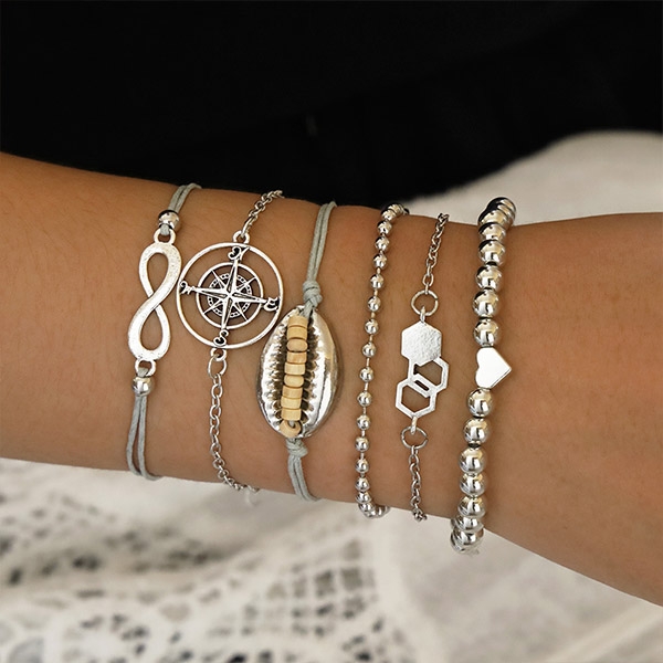 This bracelet set comes with a classic yet stylish silver tone,including 6 pieces different bracelet,