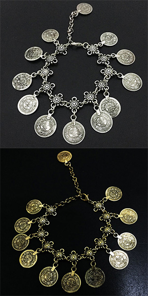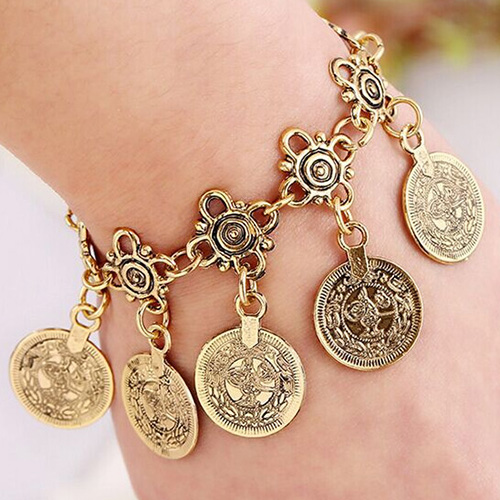 Its copper coins tassel design makes this bracelet looks retro and chic. Pairing