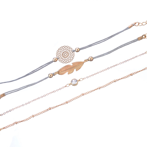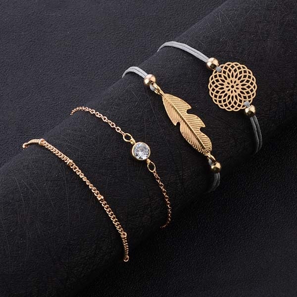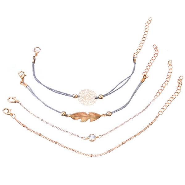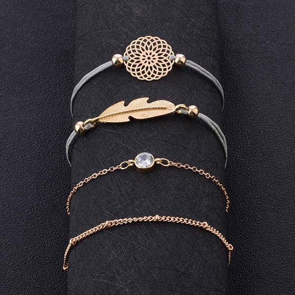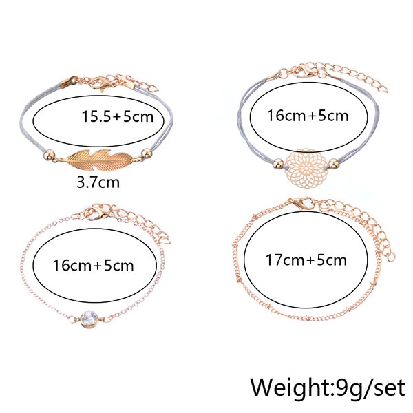 set.It consists 4 pieces different bracelets,linked with leaf and hollow out flower design,