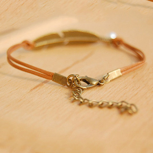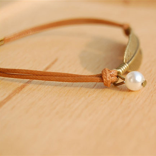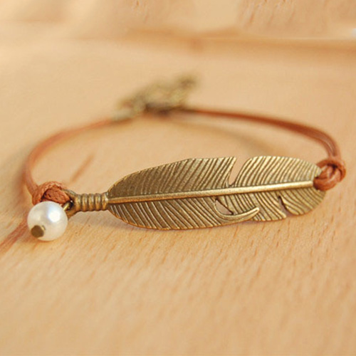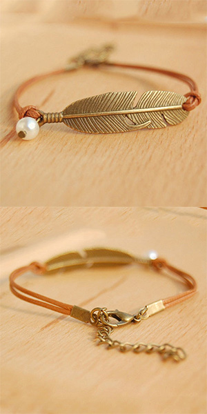eyes focused on this bracelet. Decorated with feather and pearl,chic and unique.