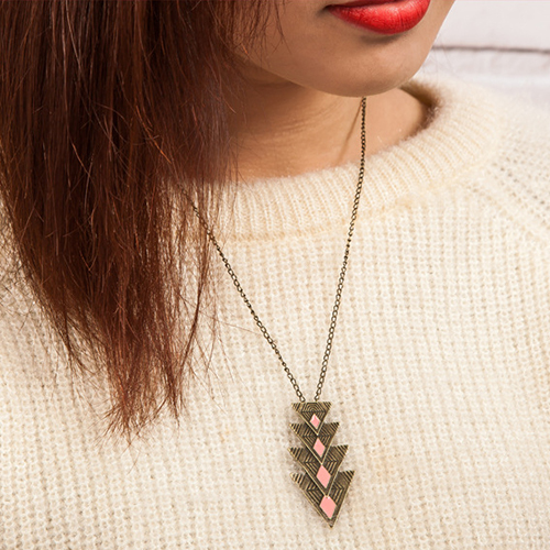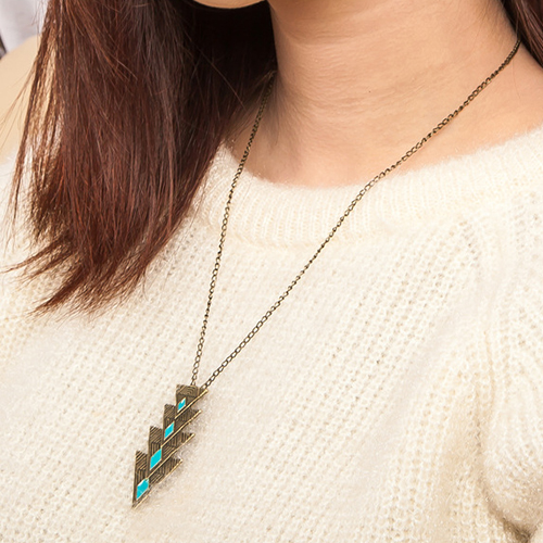 would be a good choice. Features triangle pendant,simple yet chic. Matching with your sweaters? T-shirts? Dresses?
