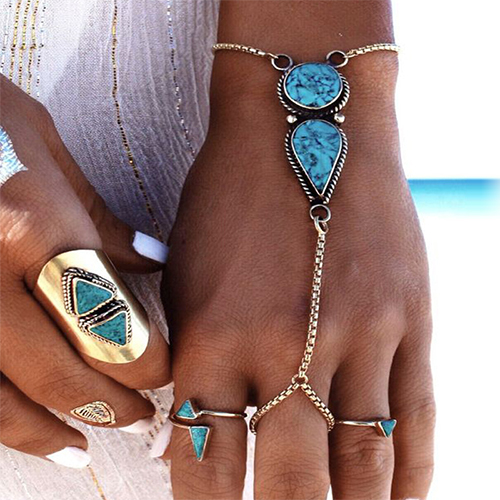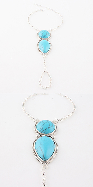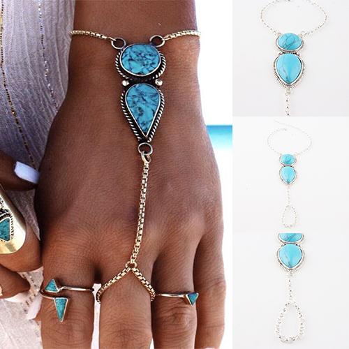 Retro Style Turquoise Beads Finger Harness Bracelet