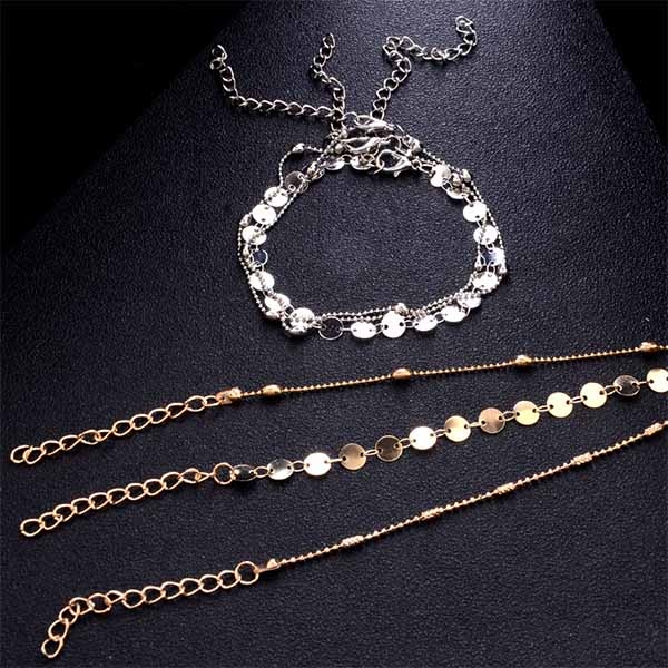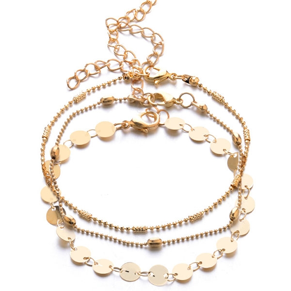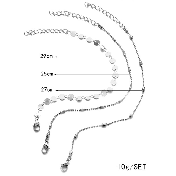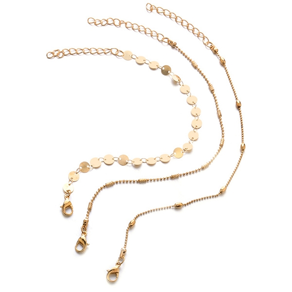 Simple Style Gold/Silver Tone Anklet Set 3 pcs/Set