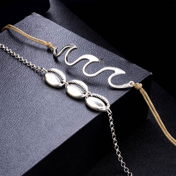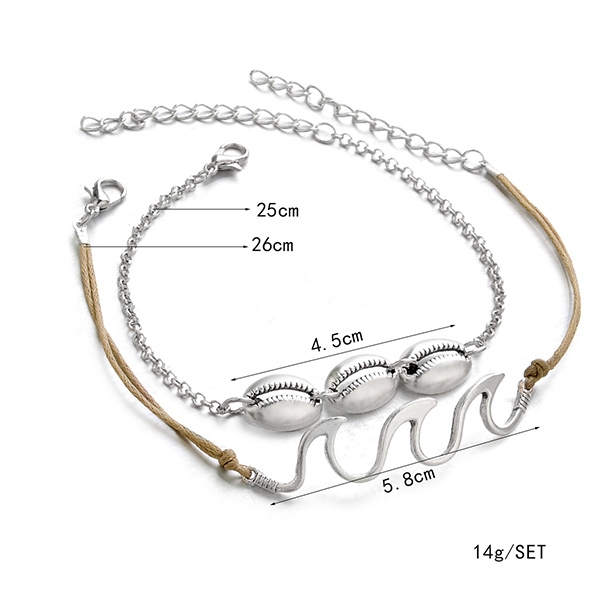Simple Style Shell Wave Pendant Anklet Set 2 pcs/Set