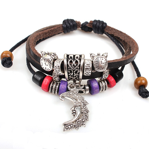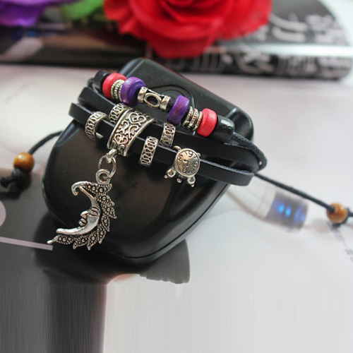 Vintage Multi-layer Moon Black Alloy Bracelet