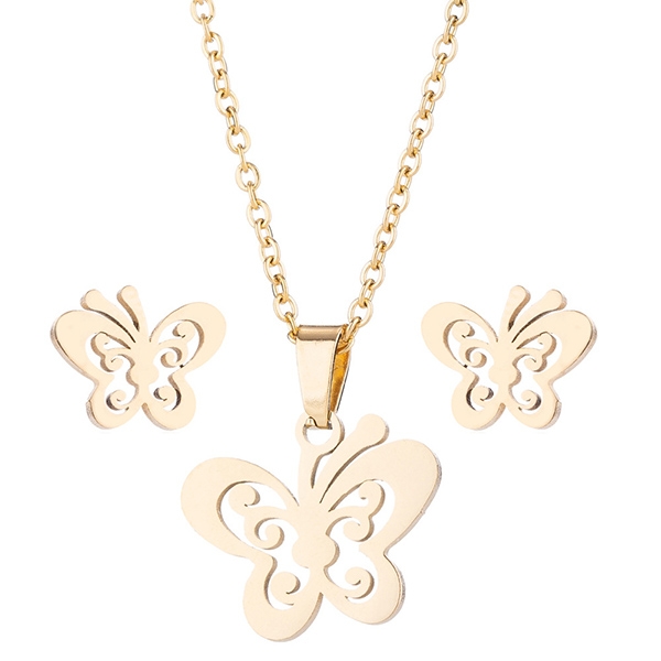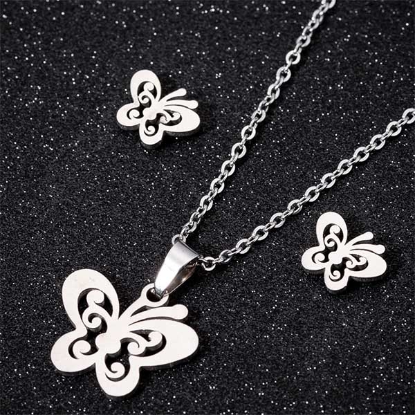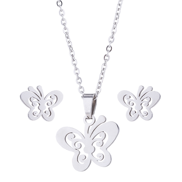 Fashion Butterfly Pendant Necklace + Stud Earrings Accessory Set