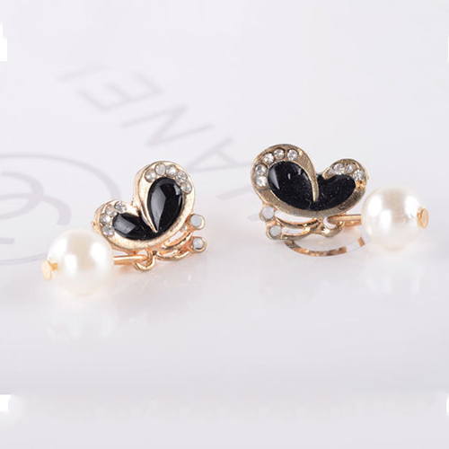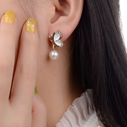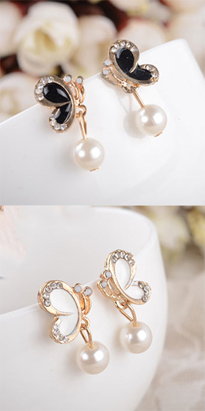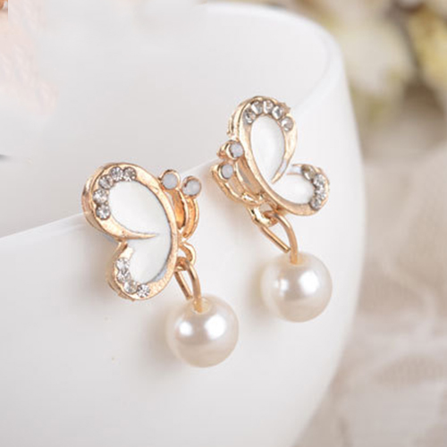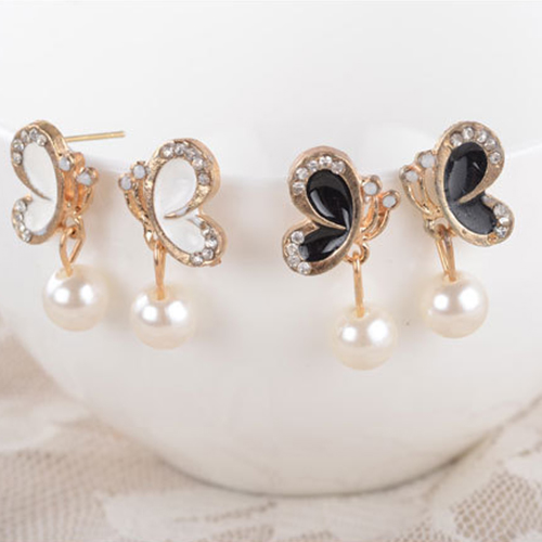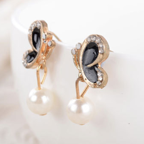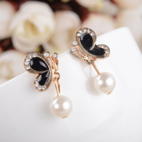 Fashion Butterfly Rhinestone-Bedecked Faux Pearl Studs
