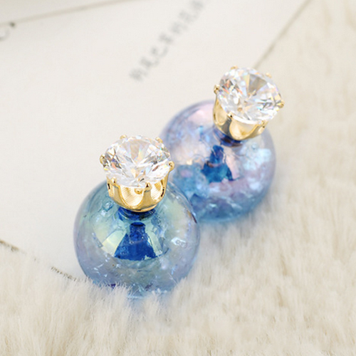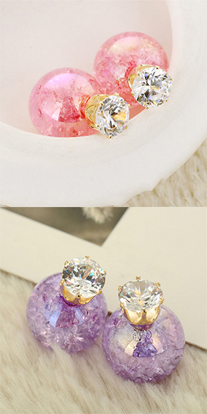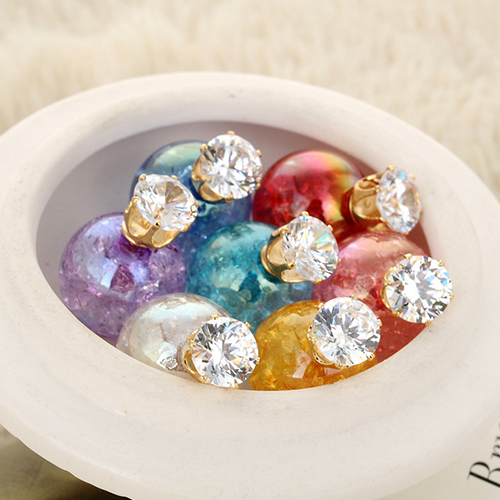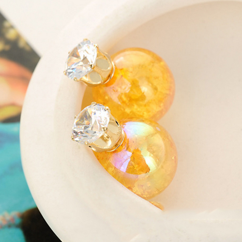 Colored pearl stud earrings,decorated with rhinestone,chic and charming.