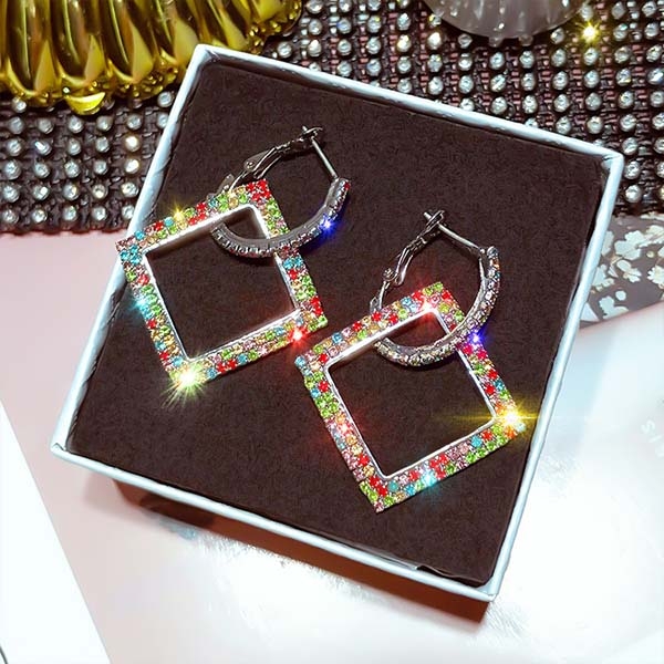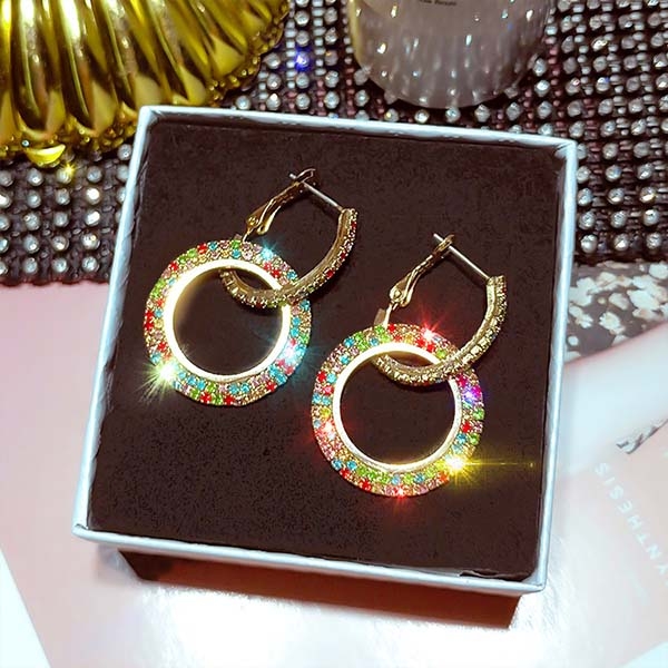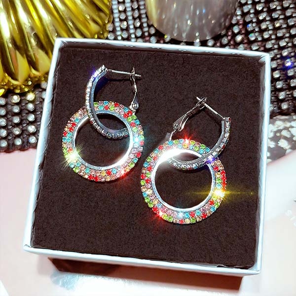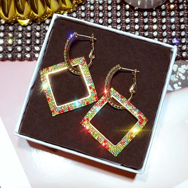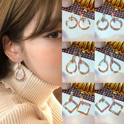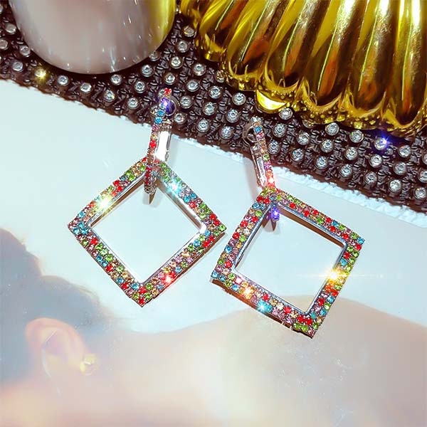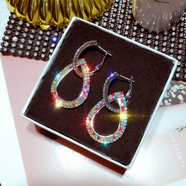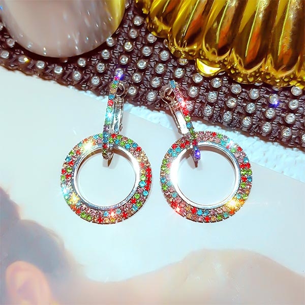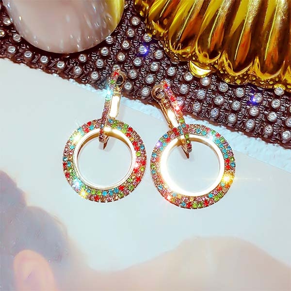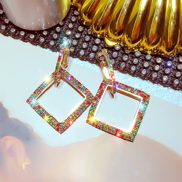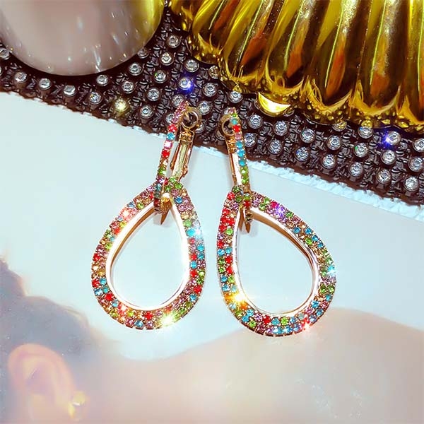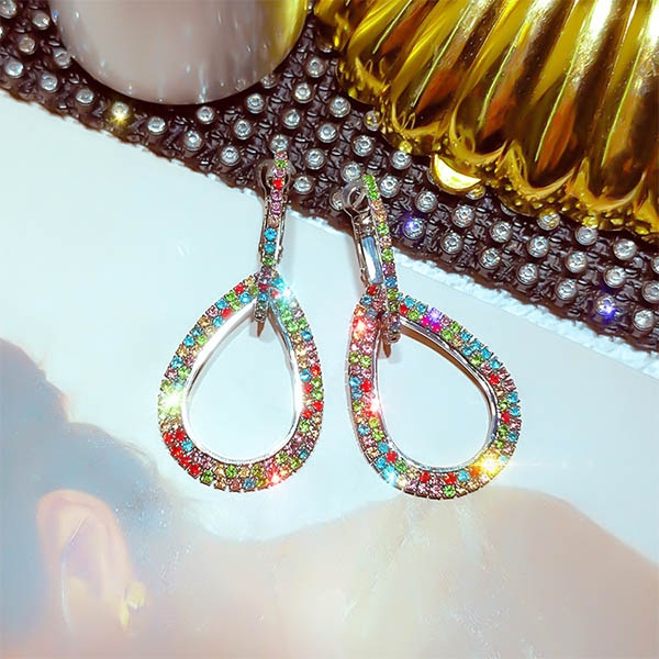 Fashion Colored Rhinestone Inlaid Earrings