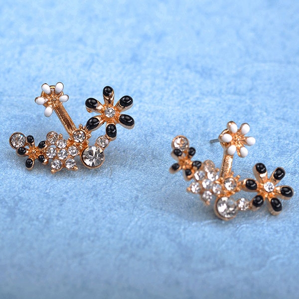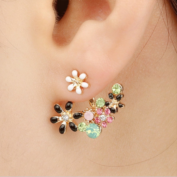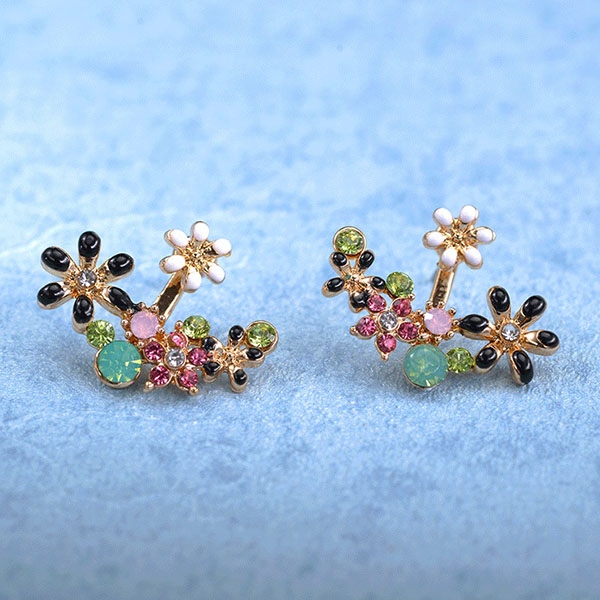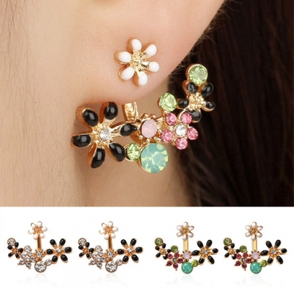 Fashion Colored Rhinestone Inlaid Flower Shaped Stud Earrings