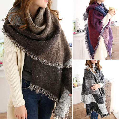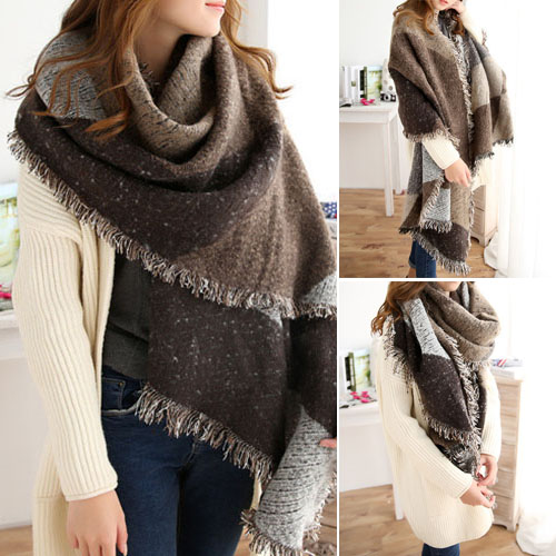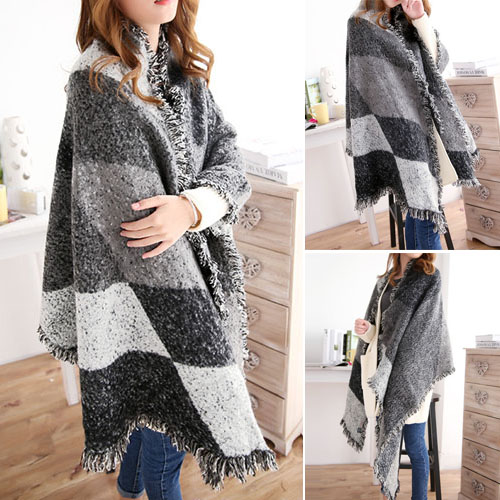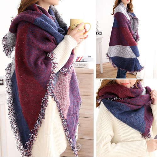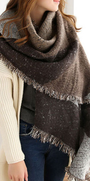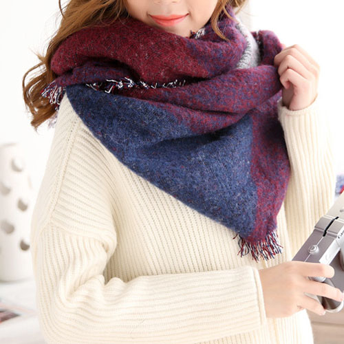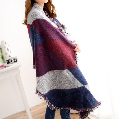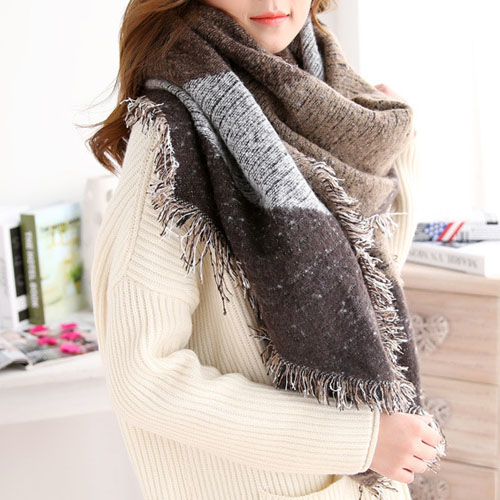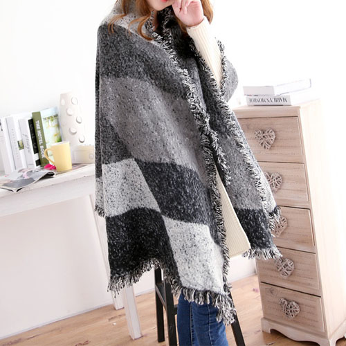 It is not only a scarf but also a shawl. With contrast color and lattice design, this scarf is crafted