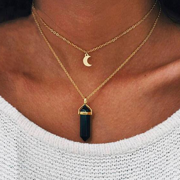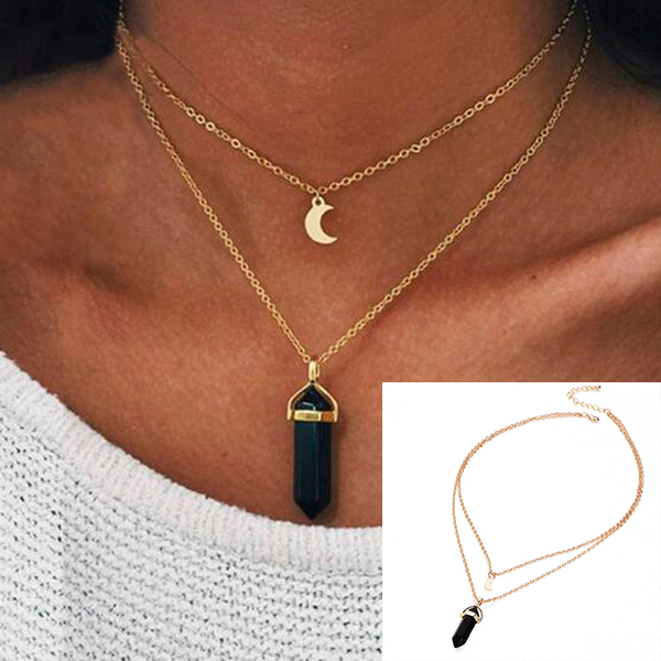 Wow,such a chic and charming necklace! Double-layer style,designed with a crescent and a hexagonal column