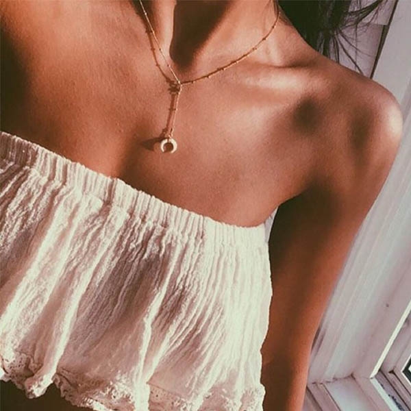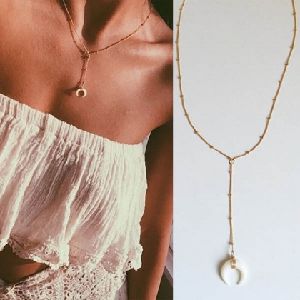 a crescent pendant,chic yet stylish. When wearing some off-shoulder and strapless outfits,