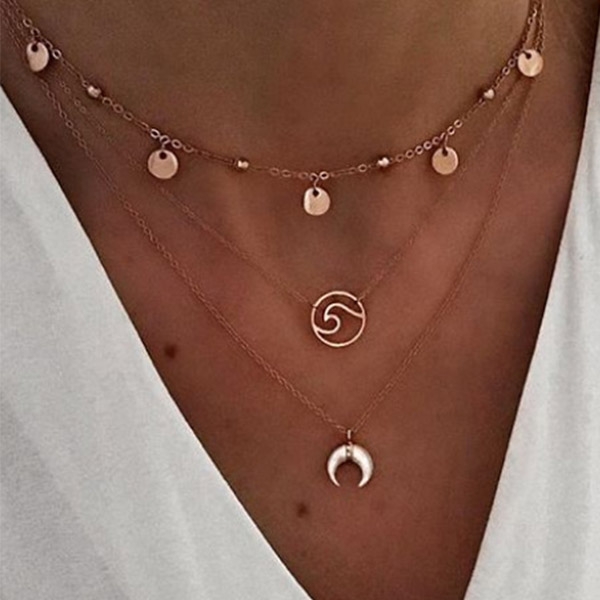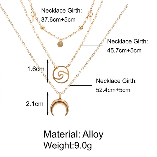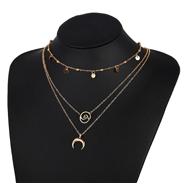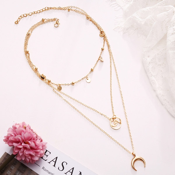 Three-layer style,decorated with crescent pendant,this necklace is a good way to embellish your