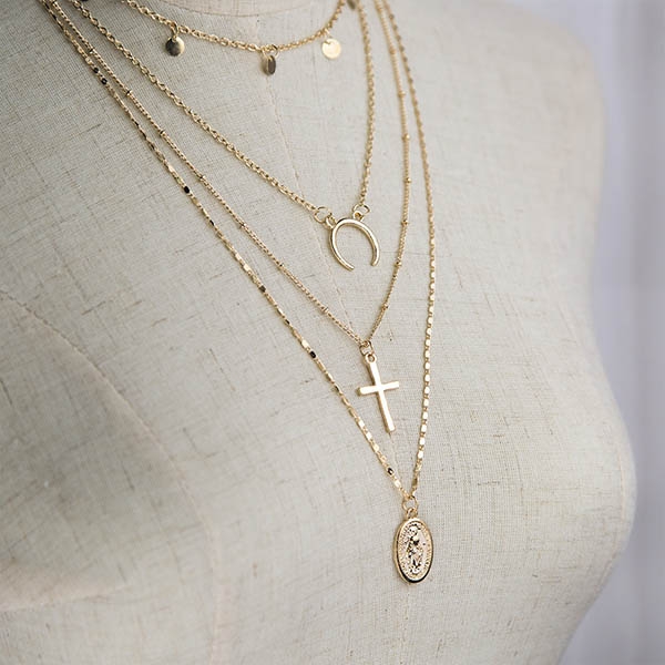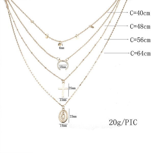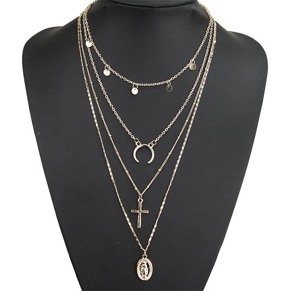 Fashion Cross Crescent Pendant Four-layer Necklace
