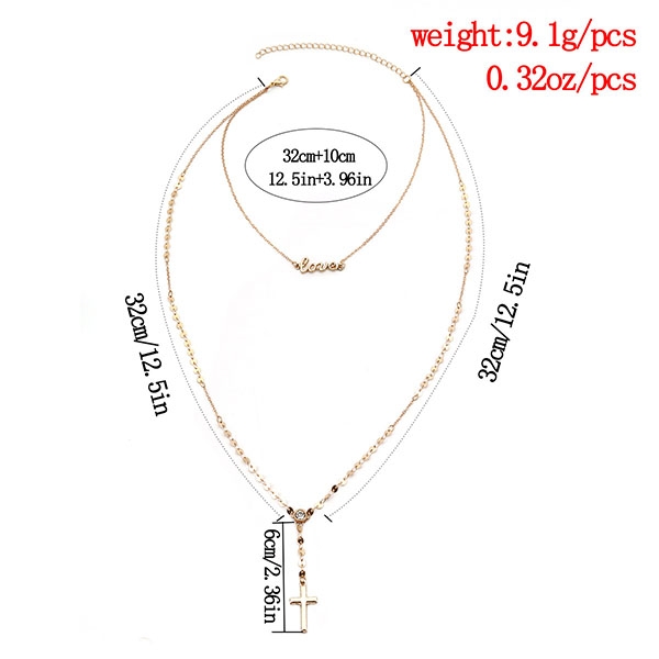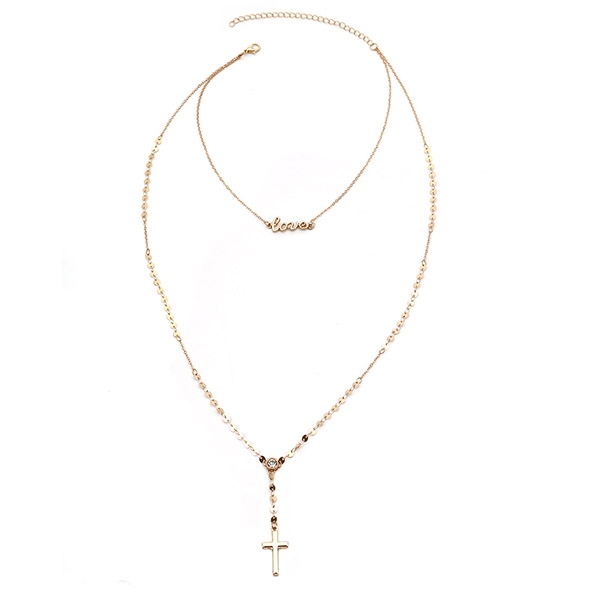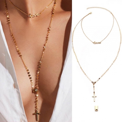 Fashion Cross "LOVE" Pendant Dual-layer Necklace